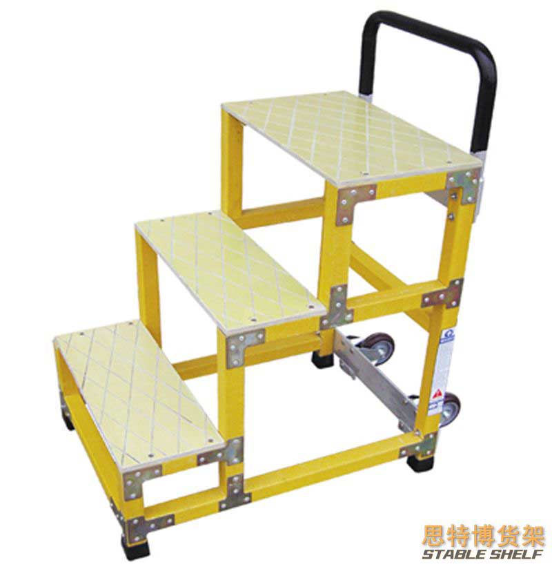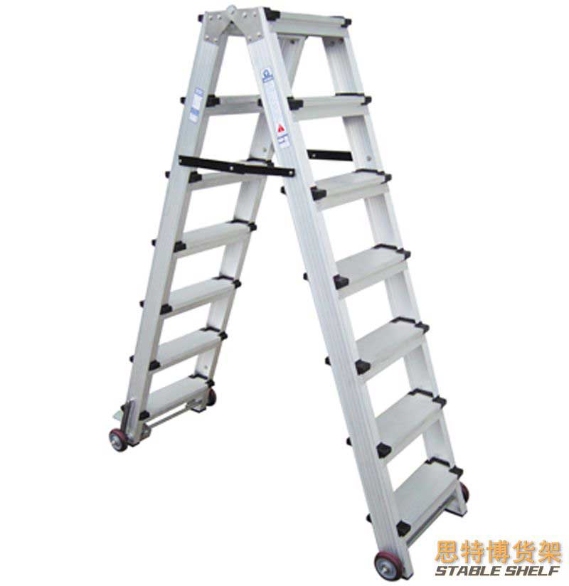 登高梯帶有定向腳輪和萬向腳輪,可以自由移動,方便取貨和運貨…