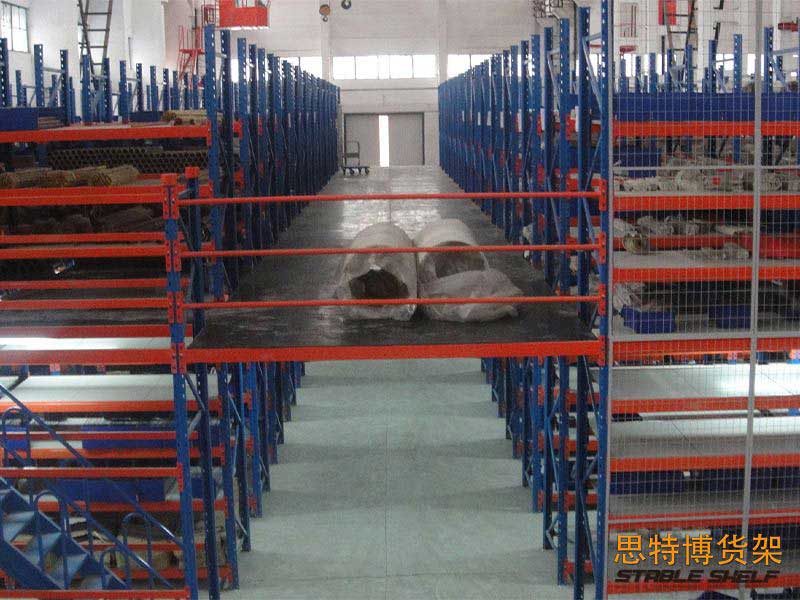 閣樓貨架系統(tǒng),通常利用中型擱板式貨架或重型擱板式貨架作為主體支撐加上樓面板(根據(jù)貨架單元的總負(fù)載重量來決定使用何種貨架),樓面板通常使用冷軋型鋼樓板、花紋鋼樓板或鋼格柵樓板。
