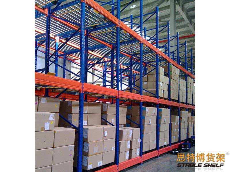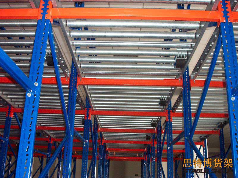 The total depth of the shelf (that is, the length of the guide rail) should not be too large, otherwise the unusable upper and lower "dead Angle" will be large, affecting the use of space, and the ramp is too long, the controllability of the slide will be poor, the momentum of the slide is large, easy to cause the slide is not smooth, blocked, and the tray goods are overturned. In order to make the slide smooth, such as the slope is long, the damping device should be added in the middle, in order to make the pallet goods slide to the bottom of the impact will not be too large and overturned, should be set at the low slope of the buffer device and cargo separation device, so the design, manufacturing, installation is more difficult, the cost is higher. Such shelves should not be too high, generally within 6 meters, the weight of the single load is generally within 1000KG, otherwise its reliability and operability will be reduced.