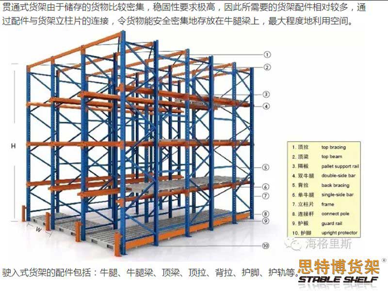 貫通式貨架可用小的空間提供大的存儲量,廣泛應用于存儲量大,品種小,進出庫頻繁的行業(yè),如冷庫食品,飲料,原料庫,乳制品等 行 業(yè)。