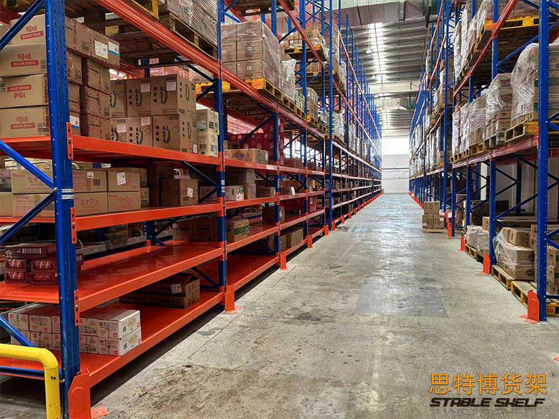 The heavy-duty shelf type uses the most common kind of shelf, which has good practice efficiency.The storage density of fixed racks is low, and the stored items are heavier and must be used with pallets and forklifts, so they are also called pallet racks.When using heavy-duty racks, the size, weight, and number of stacked layers of pallets and goods must be considered to determine the appropriate size of pillars and beams.In addition, in order to improve space utilization, the width of the aisle can be reduced, and the special forklift track form can be used to verticalize the storage space, which becomes a narrow lane type material rack.