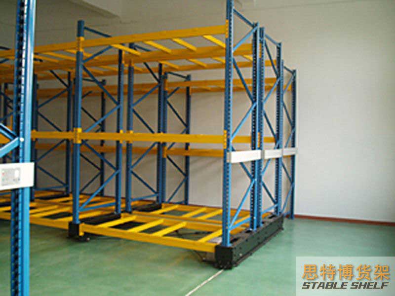 Mobile shelves are easy to control, safe and reliable. Each row of shelves is driven by a motor, which is moved by a roller mounted under the shelf along a track laid on the ground.