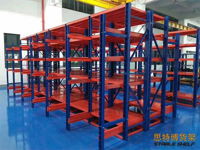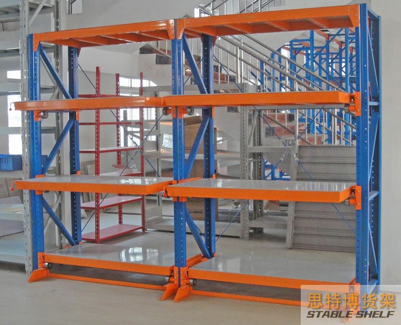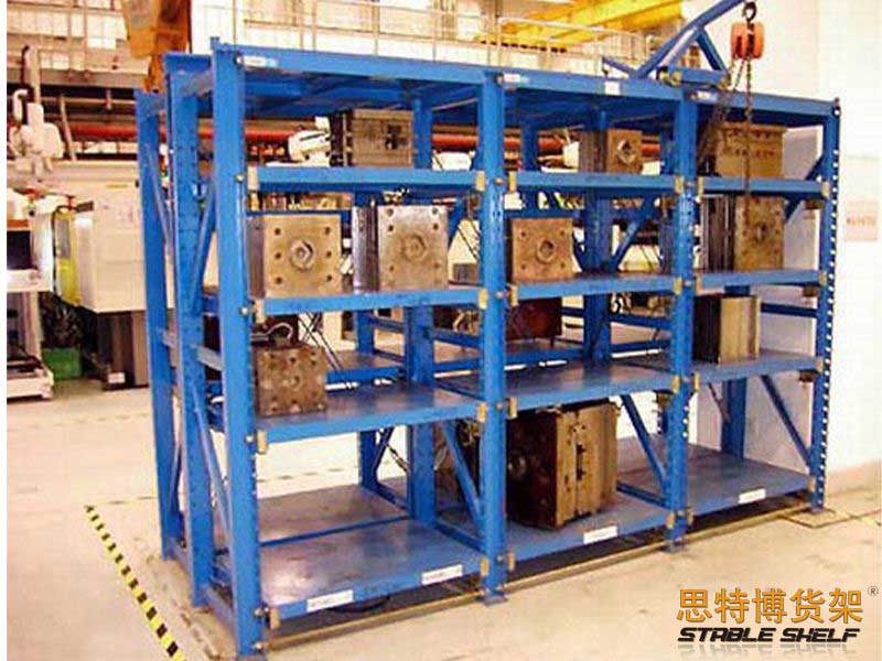 模具貨架是貨架的一種,簡稱:模具架,主要存放各種模具物品,根據(jù)層載能力要求分為輕型模具貨架和重型模具貨架。模具架主要用于放置各類塑膠模具、五金模具、壓鑄模具、粉末冶金模具、擠壓模具。貨架頂部可配置移動葫蘆車,以方便模具的起吊。模具貨架又稱模具架或抽屜式貨架,主要存放各種模具物品,貨架頂部可配置移動葫蘆車,以方便模具的起吊。安全可靠附加保險裝置;操作輕便采用軸承組合,滑動平衡并附獨立吊模裝置;節(jié)省場地,占地面積積為1.8平方米,可存放幾十套中小型模具;結構簡單,由多種組合部件組裝而成,便于拆卸、運輸和組裝;抽屜式模具架每格每層承重800-1000KG;節(jié)省空間,每格可放多套模具,方便模具保養(yǎng)管理和尋找;模架抽板承載后輕松抽送,上下間隔隨意調整,協(xié)同備有的滑車和手動葫蘆可輕松、快捷的完成存取工作;模架采取可拆移式結構,全部配件可任意組合,上下間隔,拆裝簡便。