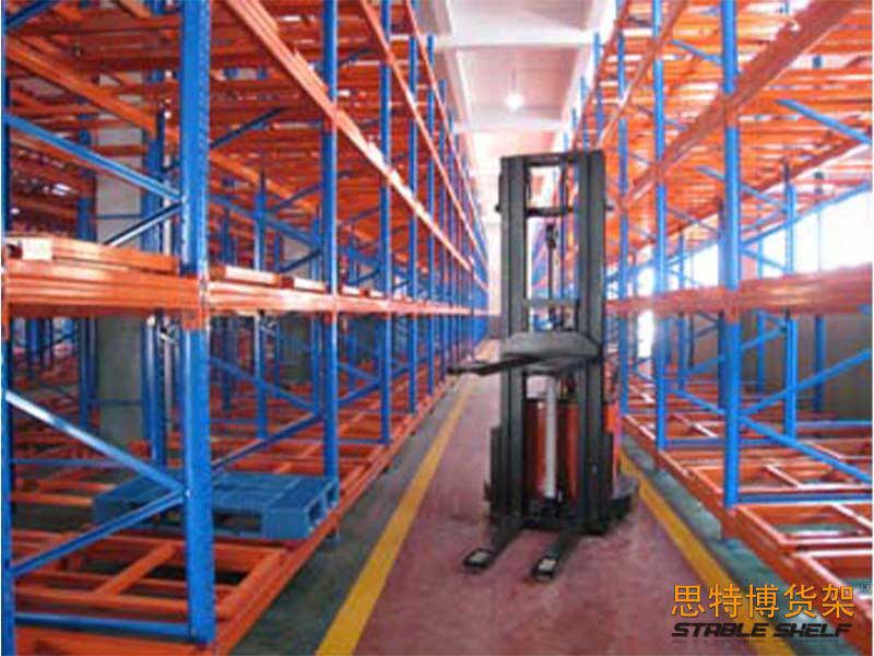 Push-in shelves, also known as push-back shelves, are overlapped between the front and back beams with multi-layer carts, and the stacked goods are placed in the carts from the outside, and the stored goods will push the original goods inside. The push-in shelf is composed of typical structural parts such as a pallet car. The pallet car has flowable characteristics, and the goods are specified to enter and exit at one end of the shelf, and follow the first-in-last-out order. When storing and transporting goods, the forklift only works at the lower end of the shelf aisle and does not need to enter the shelf goods storage aisle. Such shelves have the typical characteristics of high storage density and fast storage and transportation speed. It is usually used in situations where the storage space is extremely limited, but the storage capacity needs to be increased or the goods have time requirements, and the requirements for cargo selection are not high. The advantage of the pressed type is to save the number of operation channels, the forklift is not high, can effectively improve the utilization rate, mainly used in the warehouse space is insufficient, and the area of the warehouse is not large; And the goods must fit the position that can be first in, last out.