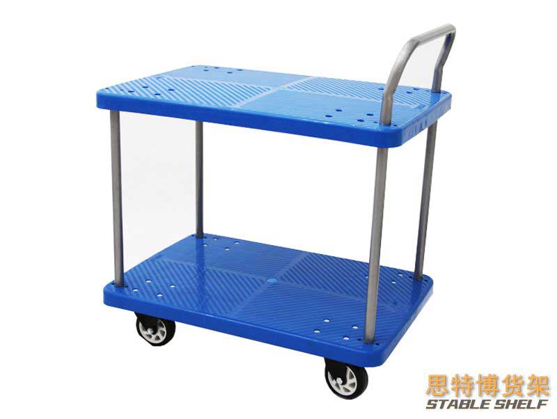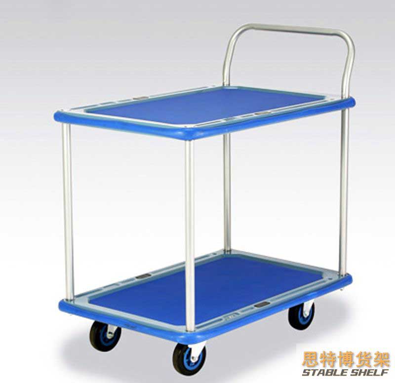 適于搬運(yùn)重量輕而便于裝卸的物品;有的車體伸出托架,便于安放桿、軸和管子等零