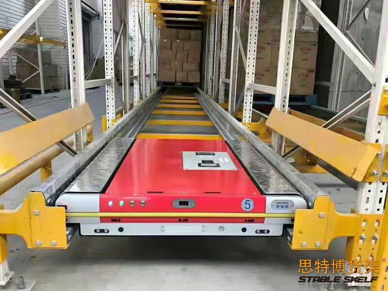 Shuttle shelf is an efficient, high-density, low-cost storage method, compared with through the shelf, the storage capacity is comparable, but safe and reliable, the shelf is not easy to damage; This kind of shelf needs to be compatible with the shuttle car, driven by a rechargeable battery, the shuttle car travels on the track and enters a specially designed shelf tunnel, using lifting plates and positioning sensors, each cargo will be transported to the farthest storage location in the tunnel. Access to goods can be easily operated by the forklift via remote control.