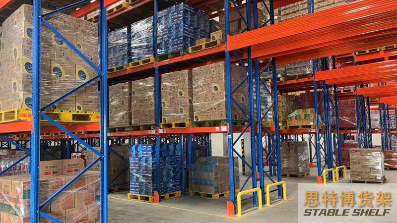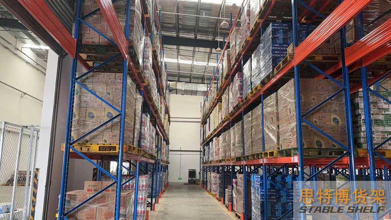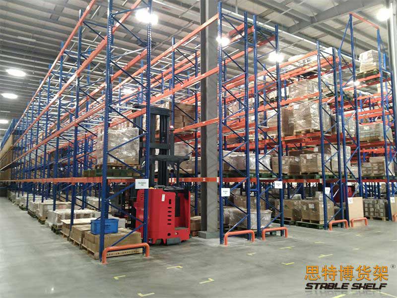 重型貨架是最常用的一種貨架,它具有良好的提取效率。固定架的儲(chǔ)存密度低,儲(chǔ)存的物品較重,必須配合托盤和叉車使用,所以又稱托盤貨架。在使用重型貨架時(shí),必須考慮托盤和貨物的尺寸、重量和堆疊層數(shù),以確定合適的支柱和橫梁尺寸。此外,為提高空間利用率,可減小通道寬度,采用專用堆垛機(jī)的軌道形式,即窄車道式貨架,將存儲(chǔ)空間垂直放置。