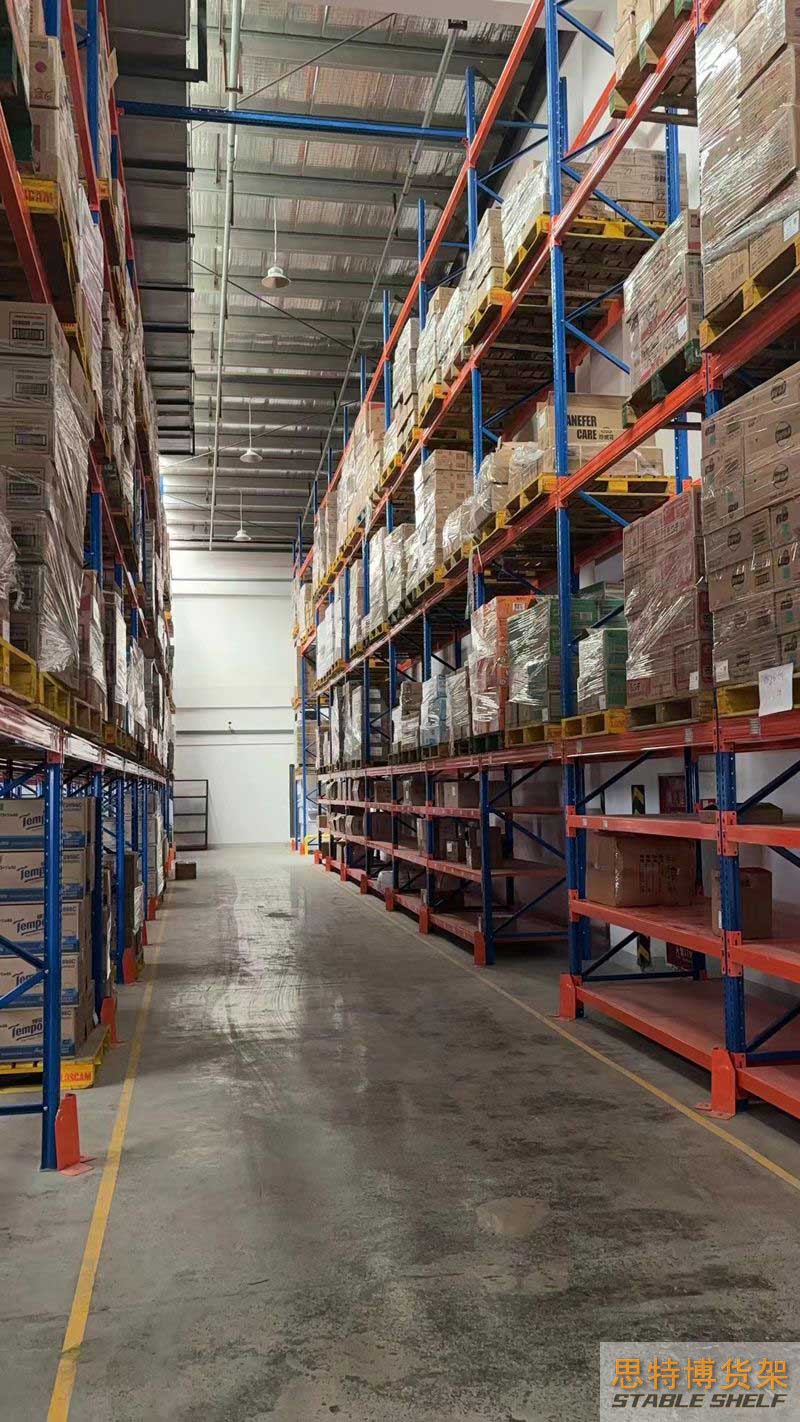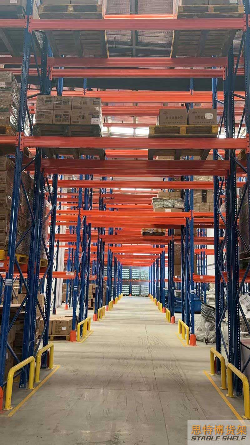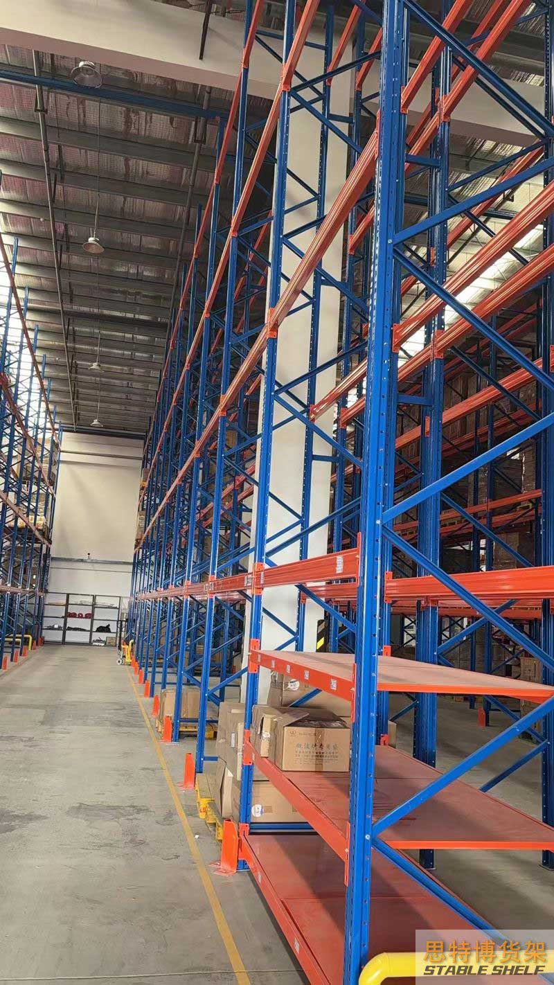 重型貨架是最常用的一種貨架,它具有良好的提取效率。固定架的儲存密度低,儲存的物品較重,必須配合托盤和叉車使用,所以又稱托盤貨架。在使用重型貨架時,必須考慮托盤和貨物的尺寸、重量和堆疊層數(shù),以確定合適的支柱和橫梁尺寸。此外,為提高空間利用率,可減小通道寬度,采用專用堆垛機(jī)的軌道形式,即窄車道式貨架,將存儲空間垂直放置。