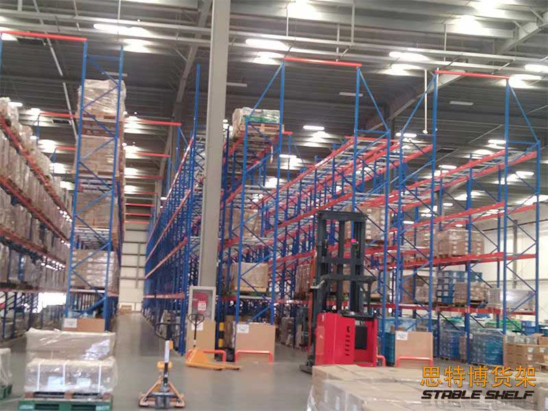 重型貨架是最常用的一種貨架,它具有良好的提取效率。固定架的儲存密度低,儲存的物品較重,必須配合托盤和叉車使用,所以又稱托盤貨架。在使用重型貨架時,必須考慮托盤和貨物的尺寸、重量和堆疊層數(shù),以確定合適的支柱和橫梁尺寸。此外,為提高空間利用率,可減小通道寬度,采用專用堆垛機的軌道形式,即窄車道式貨架,將存儲空間垂直放置。