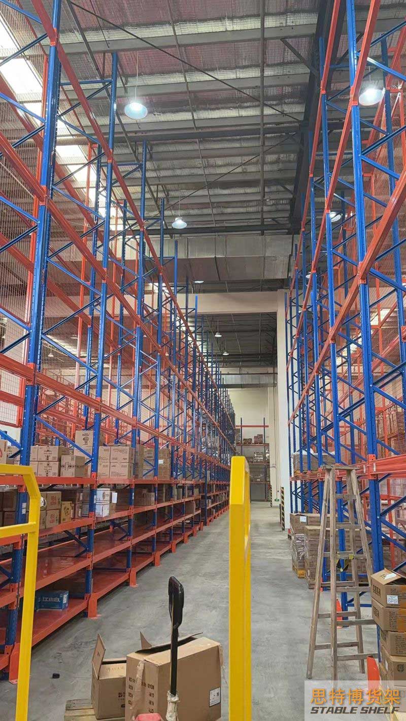 重型貨架是最常用的一種貨架,它具有良好的提取效率。固定架的儲存密度低,儲存的物品較重,必須配合托盤和叉車使用,所以又稱托盤貨架。在使用重型貨架時,必須考慮托盤和貨物的尺寸、重量和堆疊層數(shù),以確定合適的支柱和橫梁尺寸。此外,為提高空間利用率,可減小通道寬度,采用專用堆垛機(jī)的軌道形式,即窄車道式貨架,將存儲空間垂直放置。